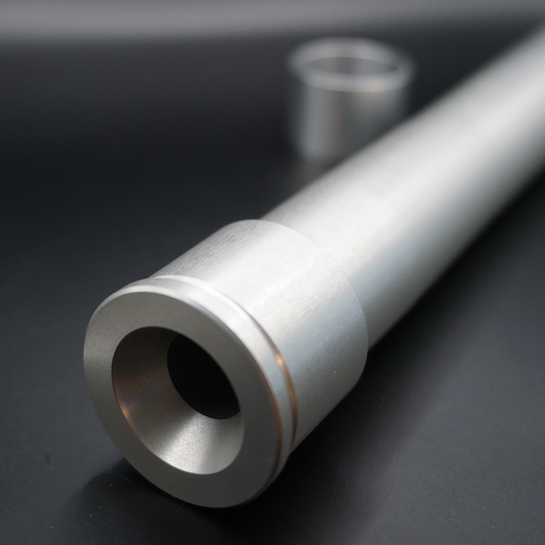 The stem is made from 7075 T6 aluminium with a clear anodized finish and the bushing is made from 6082 aluminium.